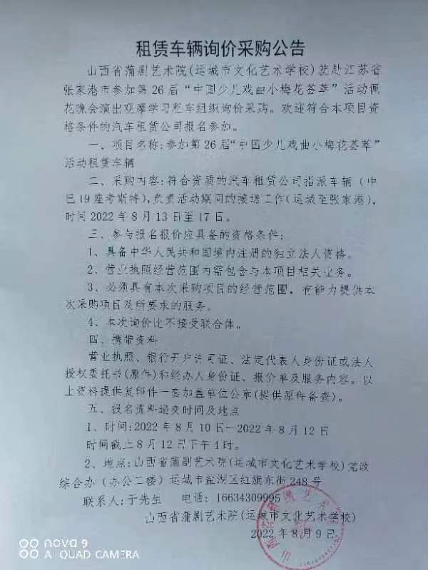 租赁车辆询价采购公告