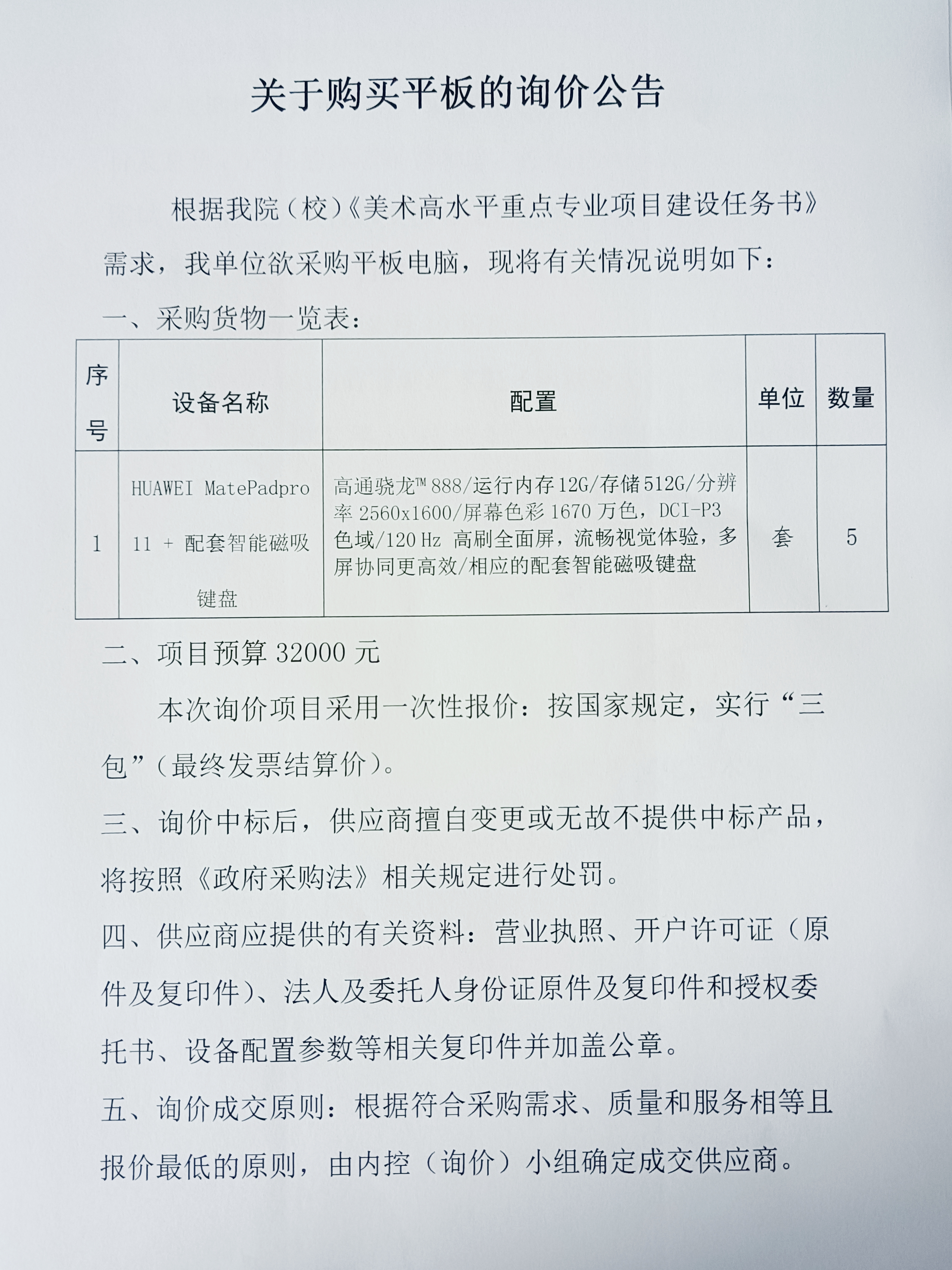 关于购买平板的询价公告