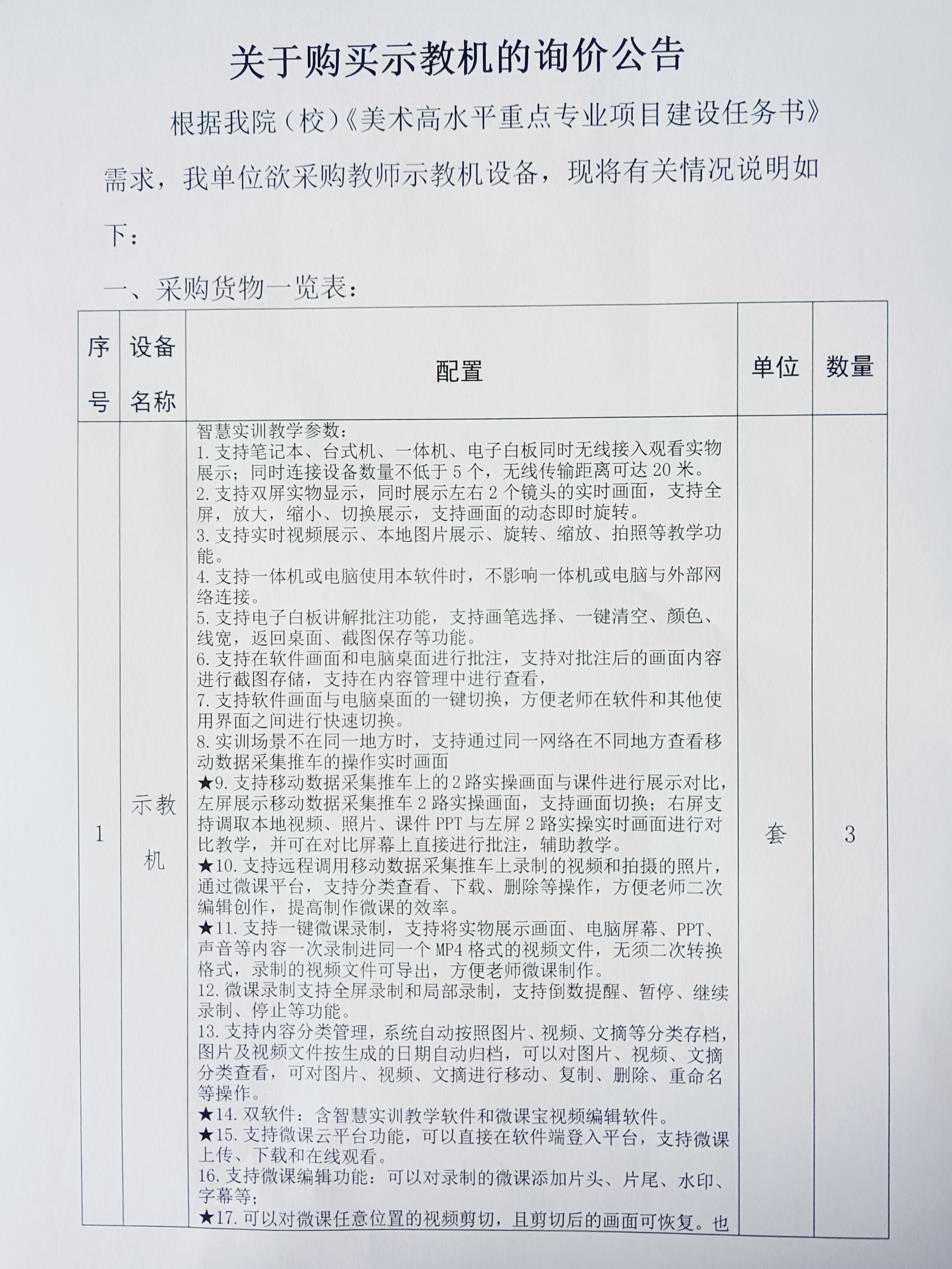 关于购买教机的询价公告