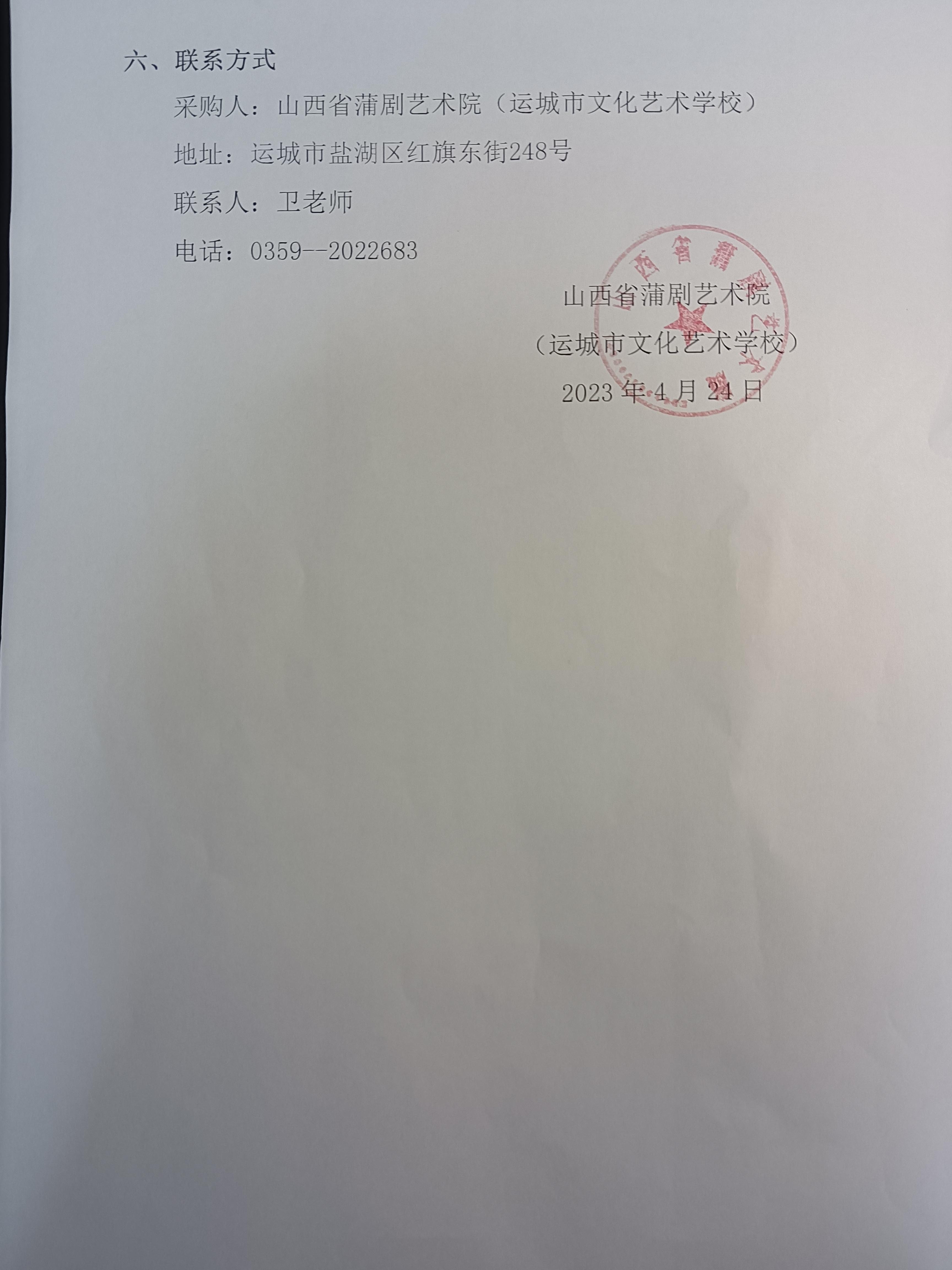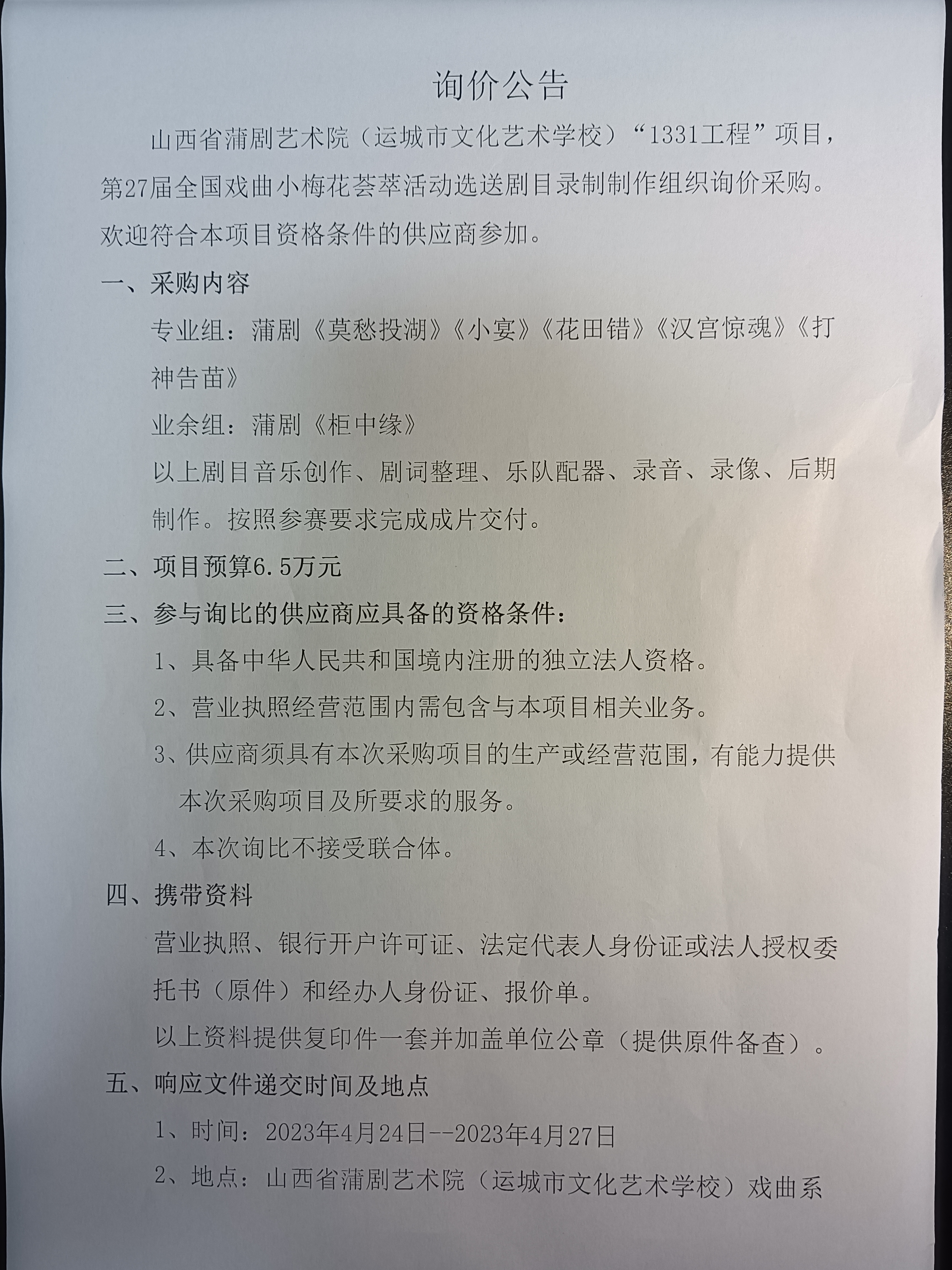 山西省蒲剧艺术院选送剧目录制制作组织询价采购公告