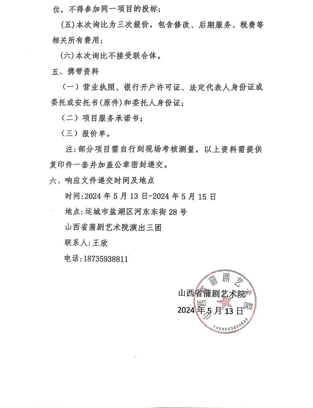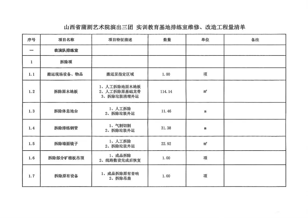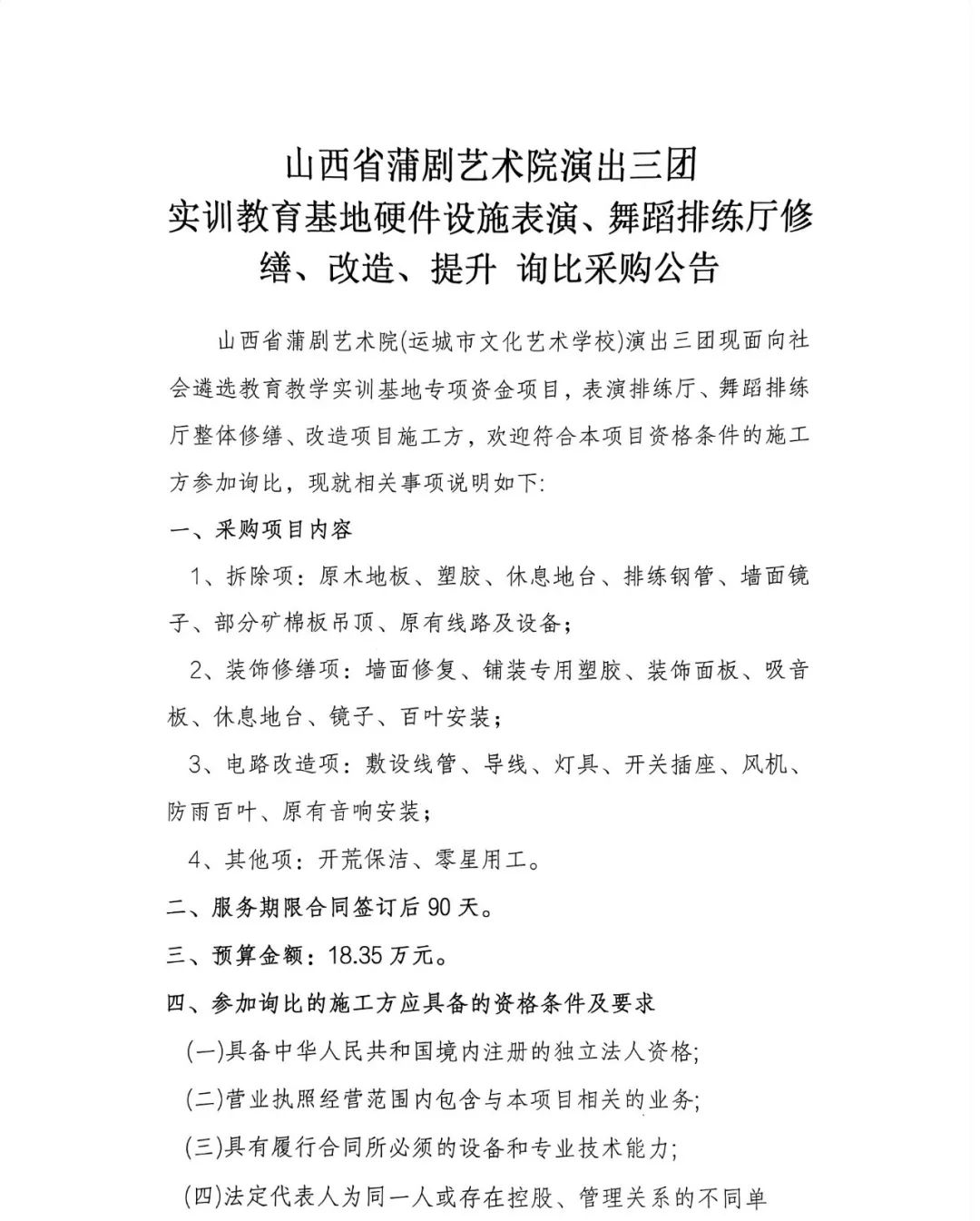 山西省蒲剧艺术院演出三团实训教育基地硬件设施表演、舞蹈排练厅修缮、改造、提升 询比采购公告