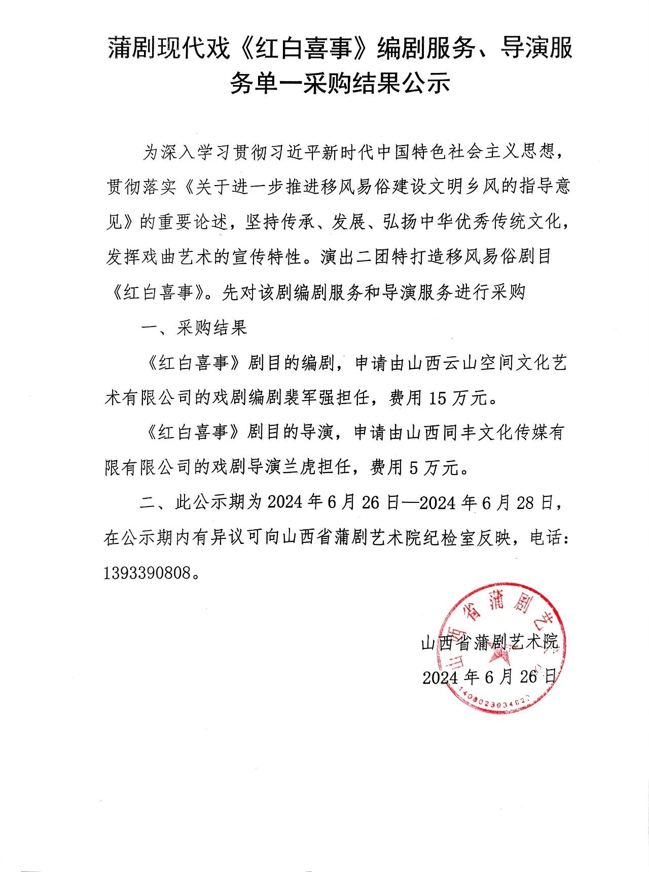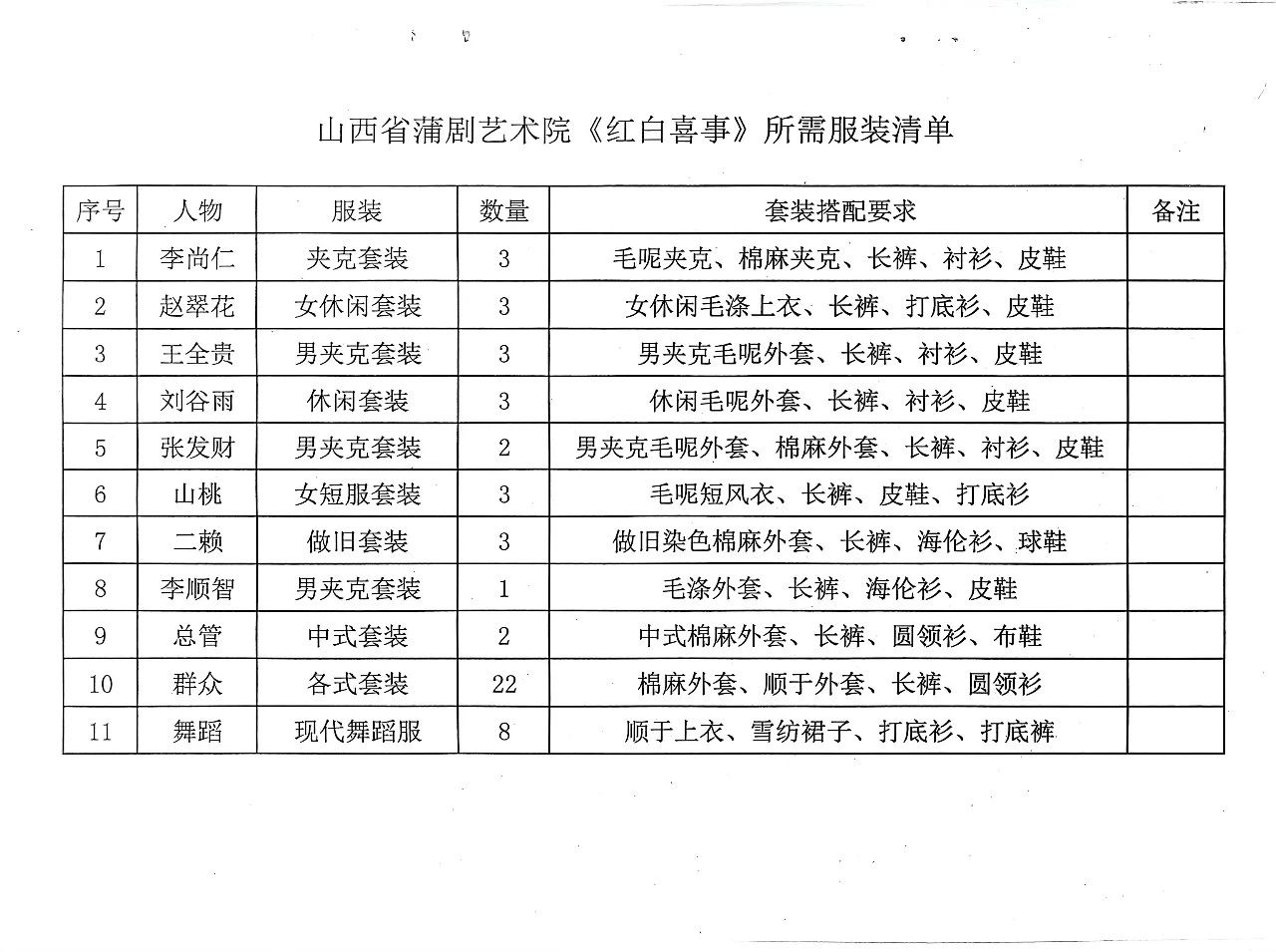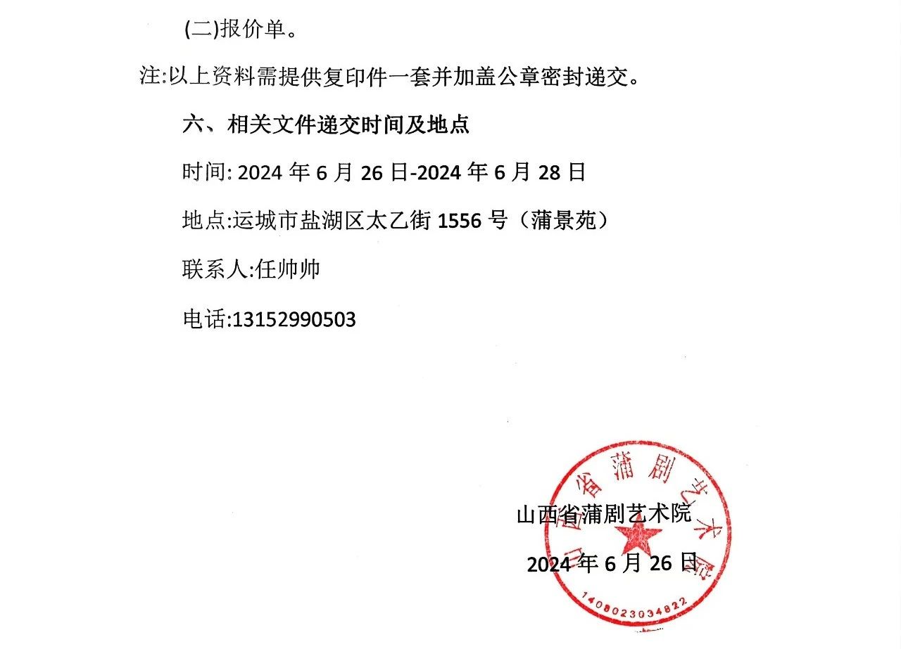 山西省蒲剧艺术院(运城市文化艺术学校)《红白喜事》戏曲服装制作询价采购公告