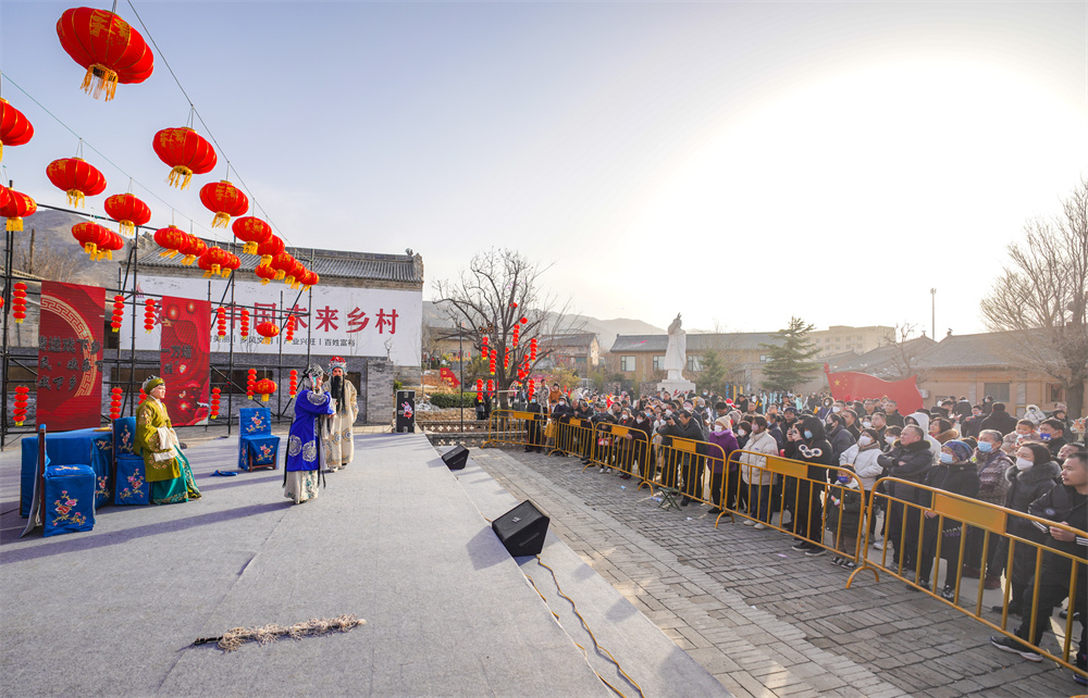 1月26日,山西省蒲剧艺术院演出一团在岚山根·运城印象景区表演戏剧《岳母刺字》,受到现场观众热捧。