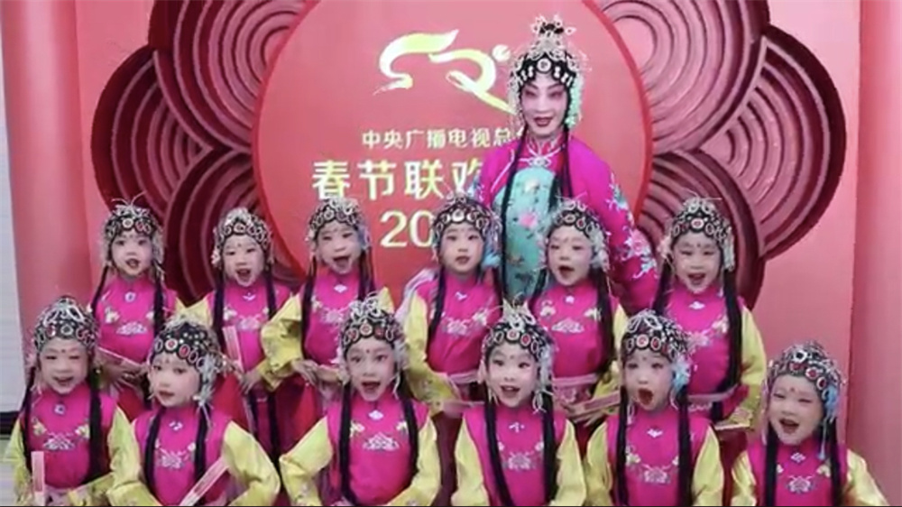 由空军蓝天幼儿艺术团的孩子们伴舞的《柜中缘》,无疑是弘扬中华优秀传统文化的创新表达,古老蒲剧与稚嫩孩童在新时代碰撞出传统与现代相交织的火花。要知道,一开始,孩子们对蒲剧的认知可谓一片空白。经过数十天的学习、排练、相处,孩子们已经可以熟练掌握《柜中缘》的节奏和韵律,并习得蒲剧基础唱腔。演出结束的那一晚,景雪变问孩子们是否喜欢蒲剧,孩童稚嫩又响亮的“喜欢”让她禁不住落泪。“谢谢央视总台没有忘记蒲剧!谢谢导演愿意相信蒲剧!”对景雪变而言,登上春晚,空军蓝天幼儿艺术团孩子们每一个精准的动作,让她看到了蒲剧传承发展的更多种可能——孩童的蒲剧,青春的蒲剧,中国的蒲剧,世界的蒲剧。