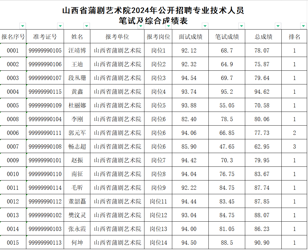 附件:山西省蒲剧艺术院2024年公开招聘专业技术人员笔试及综合成绩表