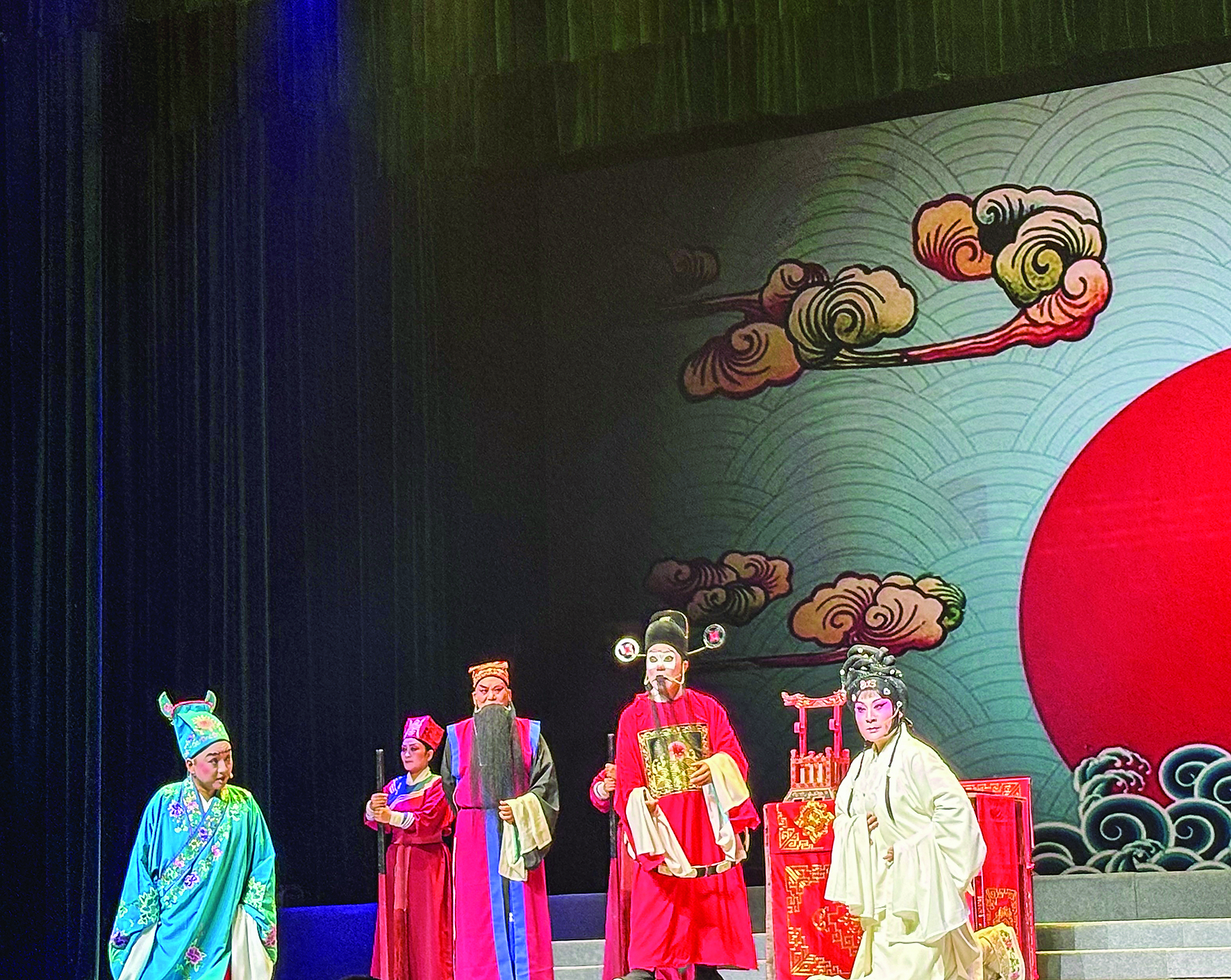 幕后团队的默契配合也为演出增色不少。简洁却不失意境的舞台呈现、与剧情同频共振的乐队伴奏,从灯光转换到唱腔衔接,每一处细节都彰显着团队的专业素养。据悉,为准备此次大赛,全团上下从剧情、念白、作曲等方面进行了全面的提质升级,力求为观众呈现一出更完满的《还阳珠》。当剧终“明镜高悬”牌匾下张济秉公断案的场景定格,蒲州大地普降甘霖的意象浮现,全场观众不约而同起立鼓掌,掌声持续良久,成为对这场演出的最好肯定。