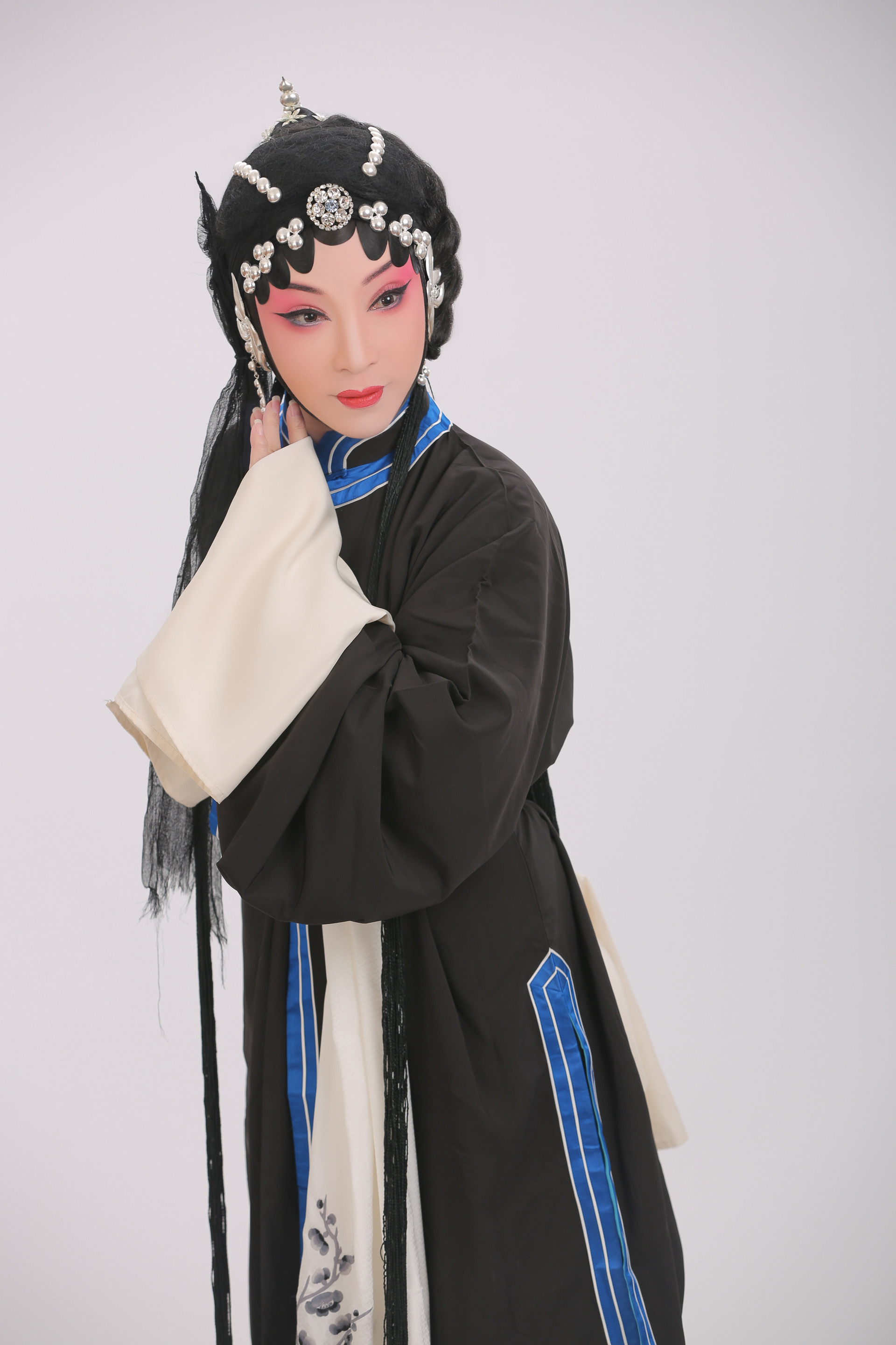 中国十大古典悲剧之一《琵琶记》,是蒲剧和各大剧种的保留剧目,蒲剧舞台上几个版本同步上演。杨晓萍结合时代特征,认真研读剧本,分析剧情,认为老版本中大团圆结局、体现封建社会一夫多妻制等与时代要求格格不入,而另一种人好、心好、好人皆死的大悲剧结局,可能使观众难以接受,产生“好人没好报”的负面社会效应。经过慎重考虑,她决心另辟蹊径,打造新的版本。她诚邀著名剧作家韩枫对该剧进行重新改编,邀请著名导演姚志强执导,将赵五娘定位为宦门出身、多才多艺、琴棋书画样样皆通的青年女性,年龄在20岁左右。新婚不久,丈夫赶考、她尽心侍奉公婆,养老送终之后,进京寻夫,却得知蔡伯喈在特殊情况下另行婚配。经过痛苦的思想斗争,她选择放手成全,自己出家修道,从而升华了人物的道德品格和精神境界,留给观众的是对赵五娘形象的敬仰和对人生的深度思考。这一改编,为《琵琶记》这一传统剧目赋予了全新的时代价值。演出时,杨晓萍根据剧情铺展和人物塑造的需要,将单云袖、双云袖、上旋袖、蹉步、膝行步、滑步、双飞跪等特技绝活运用得精准到位、恰到好处。《描容》一场,将刻苦练就的双手书画绝技融入戏中,现场为公婆画像,并双手书写“子折桂,坐东床。弃发妻,负爹娘。双亲丧,目不暝。琵琶泣,坟茔荒”的诗句,将剧情渐渐推向高潮。此剧曾入围山西省申报第二十六届中国戏剧梅花奖。
