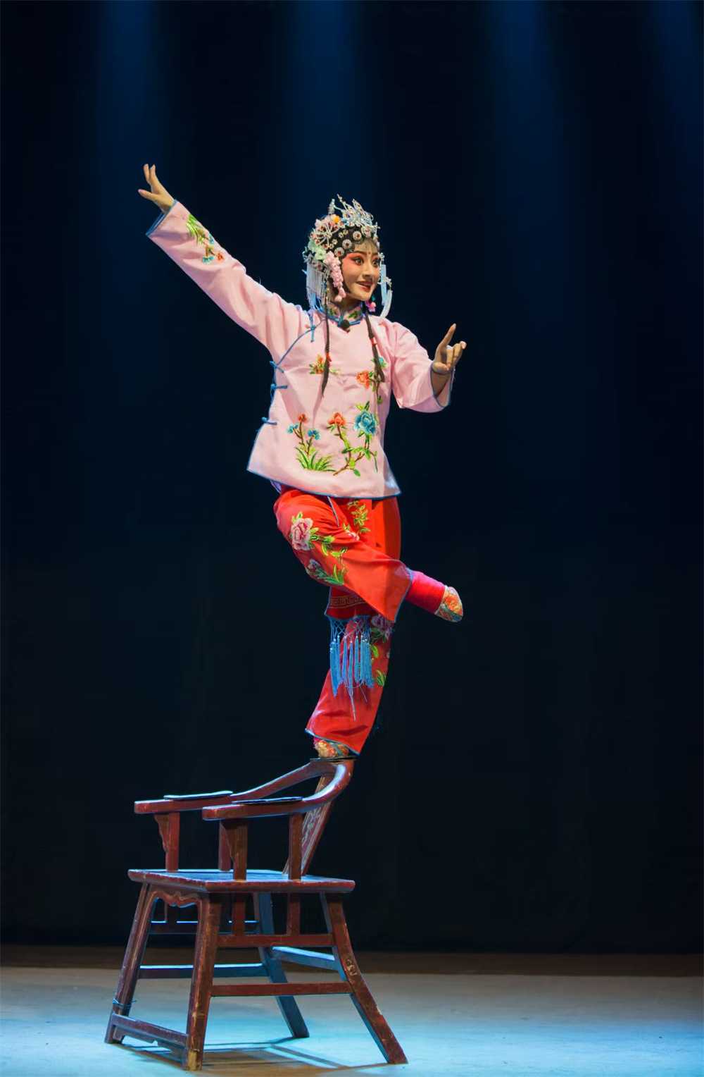 《挂画》是本戏《梵王宫》中的一折,蒲剧代表作,主要展示的是蒲剧绝技——跷功和椅子功。20世纪30年代,蒲剧表演艺术家王存才演的《挂画》,曾轰动一时。时人有“宁看存才《挂画》,不坐民国天下”之谚。历经几十年传承发展,该剧长演不衰。传至杜丽娜,其守正创新、精心钻研,多次带着《挂画》登陆央视和多省卫视,还曾远赴中东和欧洲演出。