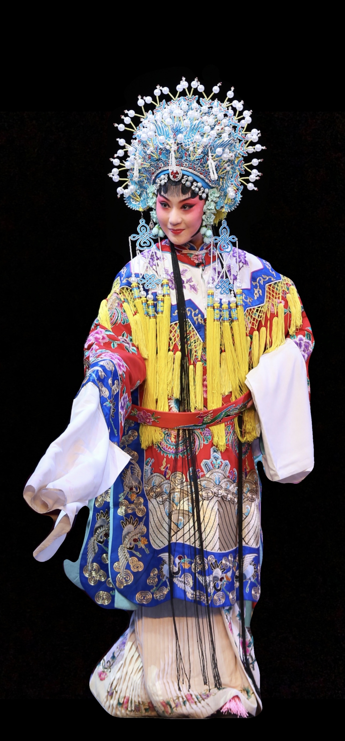 接下来的几年里,我陆续在线上欣赏了王迪在《血手印》《生死牌》《三击掌》《铁汉公薛瑄》《小宴》里扮演的王千金、黄秀兰、王宝钏、贺淑兰、貂蝉等角色的精彩片段,甚至排练花絮、幕后伴唱,以及万荣团的在线直播。尤其是现代戏《江姐》里那首耳熟能详的《红梅赞》,王迪表演得刚柔并济,拿捏着旋律的强弱,情感表达悲壮与豪迈交织,细腻地诠释了曲子中蕴含的情感层次。