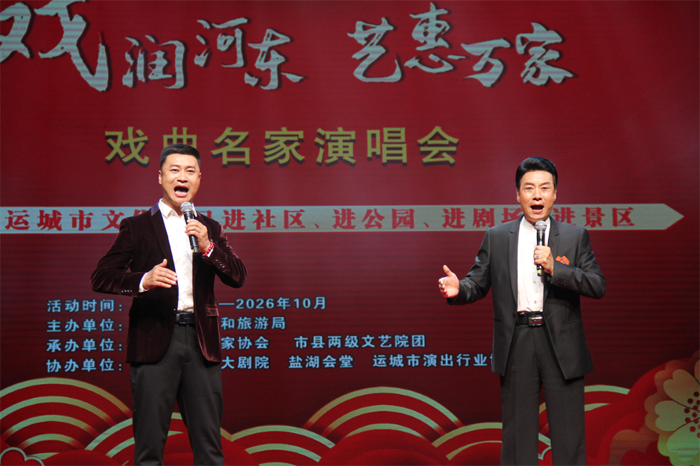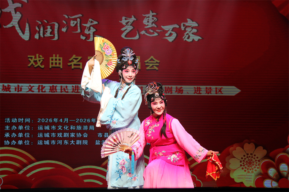 戏韵流芳绽河东,名家荟萃惠万家。4月18日晚,中心城区盐湖会堂内锣鼓铿锵、戏韵悠扬,2026年运城市“戏润河东·艺惠万家”系列活动重头戏——戏曲名家演唱会在此燃情开演。我市戏曲界众多名家齐聚一堂,以经典唱段和精彩演绎,为广大戏迷朋友献上了一场高水准、高品位的戏曲文化盛宴,现场座无虚席,掌声和叫好声不绝于耳。